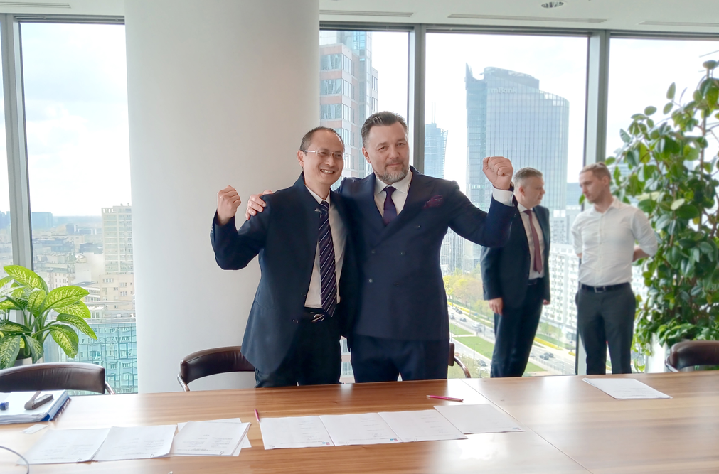 On April 29, 2022, the Signing Ceremony for Business Transaction of Meide Group's Acquisition of Poland Odlewnia Zawiercie Inc" was held in Warsaw, Poland. Mr. Chang Cheng, vice chairman of Meide Group and Mr. Rafel salsky, shareholder of Poland Odlewnia Zawiercie company, signed the transaction and announced that Poland Odlewnia Zawiercie company joined Meide Group officially.