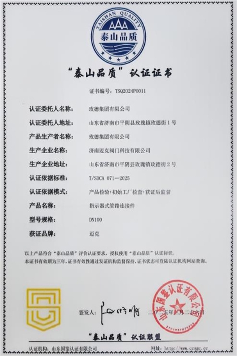 5月8日,山東省市場(chǎng)監(jiān)督管理局正式發(fā)布2024年度“泰山品質(zhì)”認(rèn)證企業(yè)名單,玫德集團(tuán)憑借卓越的產(chǎn)品質(zhì)量、技術(shù)創(chuàng)新能力和行業(yè)領(lǐng)先地位,獲得濟(jì)南市市場(chǎng)監(jiān)督管理局推選,成功通過(guò)嚴(yán)苛評(píng)審,榮獲這一代表山東省最高質(zhì)量水平的權(quán)威認(rèn)證,成為濟(jì)南2家獲此殊榮的企業(yè)之一。此次獲評(píng),不僅是對(duì)玫德集團(tuán)長(zhǎng)期堅(jiān)守品質(zhì)初心的肯定,更彰顯了其作為全球流體輸送領(lǐng)域領(lǐng)軍企業(yè)的綜合實(shí)力。