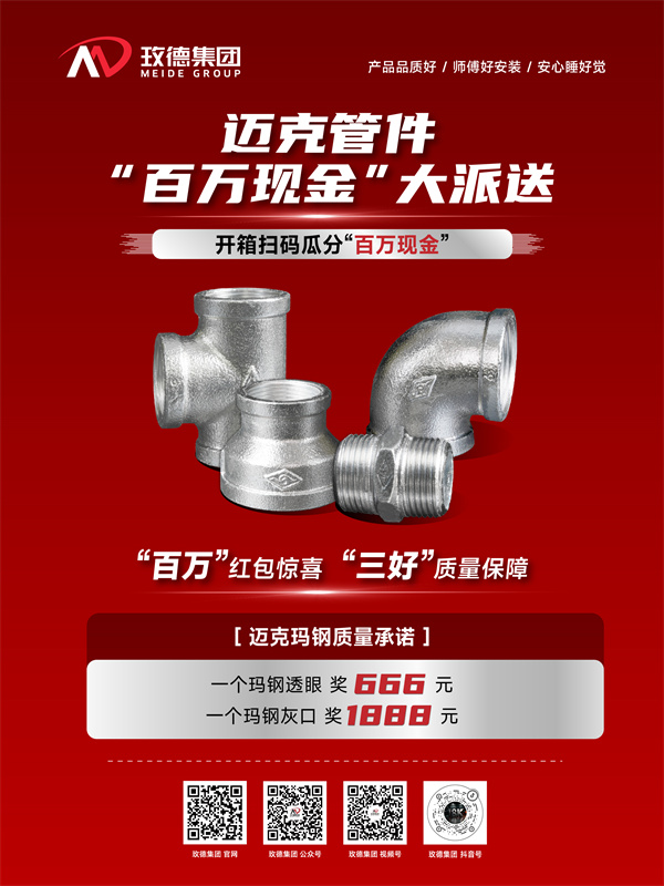 即日起,凡購買玫德集團邁克牌瑪鋼、溝槽管件,有機會參與開箱掃碼瓜分 “百萬現金” 活動!