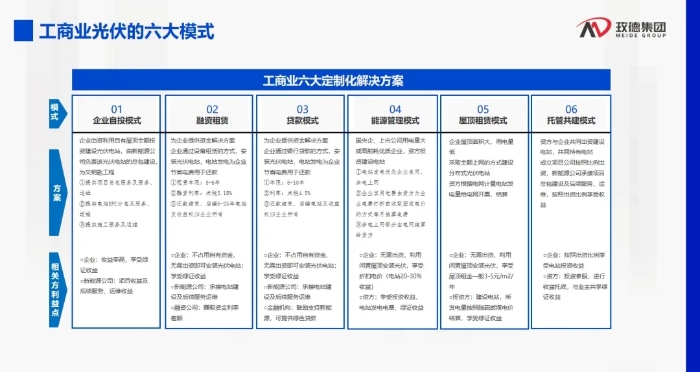 對于新能源的崛起,孔主席分享了玫德集團(tuán)近些年光伏新能源的實(shí)踐,并深入淺出的舉例介紹了對鑄造企業(yè)的實(shí)際經(jīng)濟(jì)價(jià)值,以及玫德新能源在工商業(yè)提供的六大定制化解決方案。